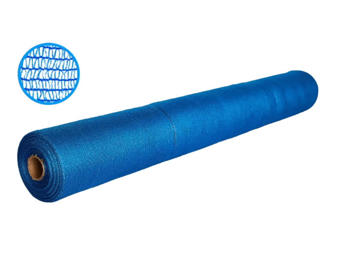 Malla azul resistente, ideal para protección, sombreado y resguardo en construcción, agricultura o almacenamiento.